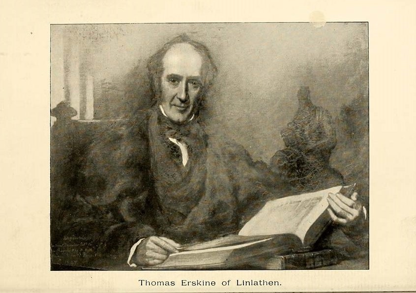 Thomas Erskine of Linlathen (1788-1870) was a Scottish lay theologian whose influence on Christian thought since the early 1800s has largely gone unrecognized except perhaps in academic circles. His 1828 book, The Unconditional Freeness of the Gospel, is credited with having played a major role in restoring the long-forgotten concept of the universal Fatherhood of God in his Scottish homeland.